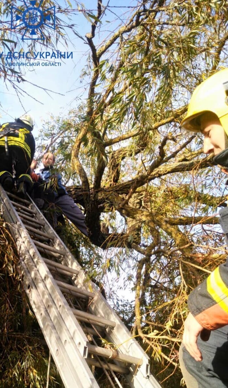 Обідньої пори мешканець села Клопочин Володимирського району під час обрізання дерева травмувався падаючою гілкою та не зміг злізти з дерева. Йому на допомогу прибули рятувальники зї частини №18 смт Іваничі. По висувній драбині за допомогою спеціальних ношей бійці ДСНС спустили чоловіка на землю і передали медикам.