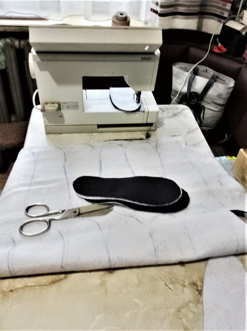Онук Галини Абдулаївни Давид усіма силами допомагає бабусі у цій благородній справі. Малює та вирізає ескізи устілок різного розміру, а далі вже справа рук майстрині швейної справи. Пані Галина неодноразово і про час забуває і про їжу, коли включається в благодійний швейний процес.