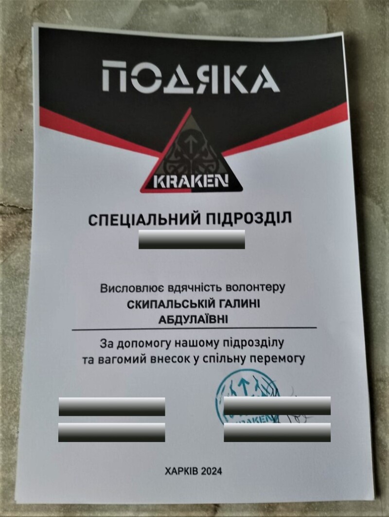 Жінка неодноразово отримує вдячність з фронту у вигляді подяк та фото від наших захисників.