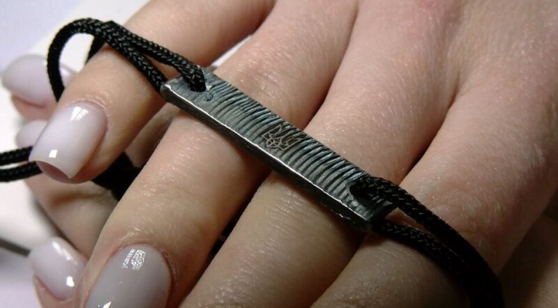 Браслет із зображенням тризуба із п`яти грамів сталі, зроблений одним з українських ювелірних заводів для збору грошей на потреби Збройних сил України.