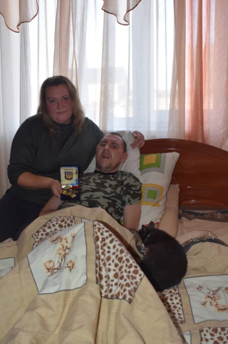 «Бачте, скільки в мого чоловіка орденів?» – жінка показує нагороди свого коханого, які отримав він за час служби. «Якби вони могли повернути йому здоров’я або ж допомогли знайти лікарню, де б він міг підлікуватися…» – додає притишеним голосом і поправляє подушку свого коханого, погладивши його по голові і з ніжністю вдивляючись йому в очі. І, здається, навіть від цього погляду Олегу Шитлюку стає трохи легше.
