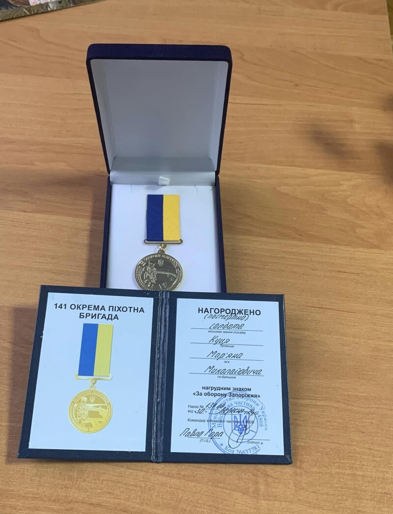 Наказом командира військової частини А 4808 від 30 вересня 2024 року полеглого воїна Мар'яна Миколайовича Куця з Берестечківської громади (посмертно) нагороджено нагрудним знаком «За оборону Запоріжжя».