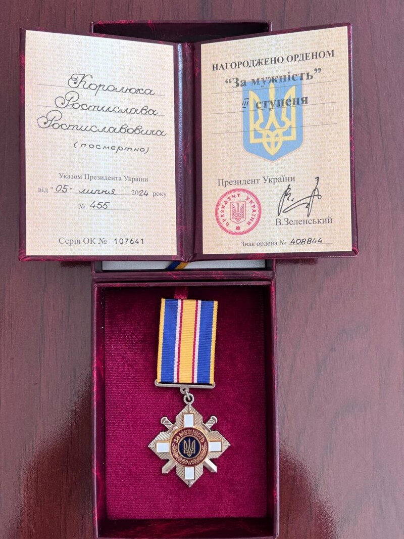 Президент України Володимир Зеленський посмертно відзначив орденом «За мужність» ІІІ ступеня військовослужбовця з Любомльської громади Королюка Ростислава Ростиславовича.