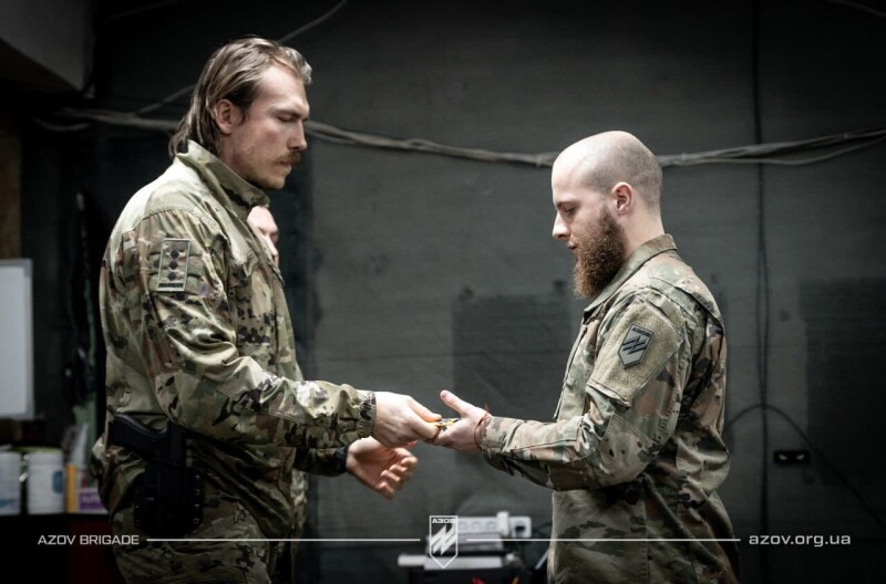 Головний символ підрозділу, разом з іншими нагородами, азовцям вручив командир 12-ої бригади спеціального призначення «Азов», полковник Денис Прокопенко.