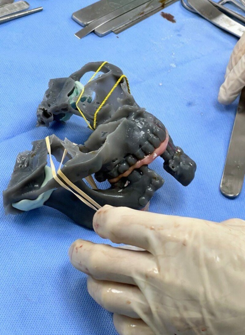 Для такої операції була потрібна 3D-модель щелепи Михайла в реальному розмірі. Її було виготовлено на 3D-принтері завдяки попередній спіральній комп'ютерній томографії. Під час операції одночасно працювали дві команди хірургів. Було використано кістковий фрагмент клубової кістки пацієнта, яку адаптували під травму та закріпили титановою пластиною.