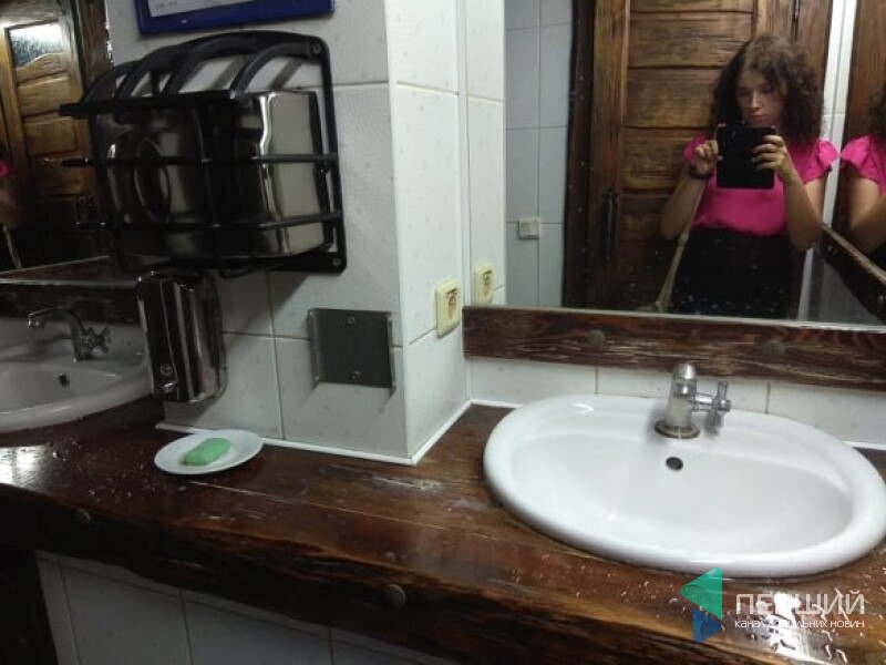 Якщо ж таки хочеться потрапити в комфортний туалет, можна пройтись до кафе «Сніжинка». Воно – одразу біля входу в парк з боку проспекту Волі. Дозволу у персоналу питати непотрібно – біля дверей помітно бажаний вказівник. Всередині не надто охайно – попередні відвідувачі розбризкали воду. Та й рідкого мила нема – шматок твердого лежить на тарілці. Але порівняно з парковими «зручностями», тут умови, звичайно, кращі.