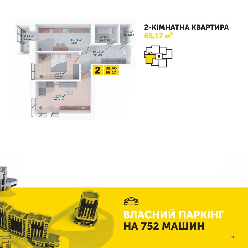 Крім того, на цю квартиру можна брати іпотеку. «Кредобанк» пропонує ставку від 14,5 % річних на перші два роки кредитування та від 17 % на третій рік кредитування. З 4-го року відсоткова ставка вираховується згідно з індексом. Термін кредиту може становити до 20 років.