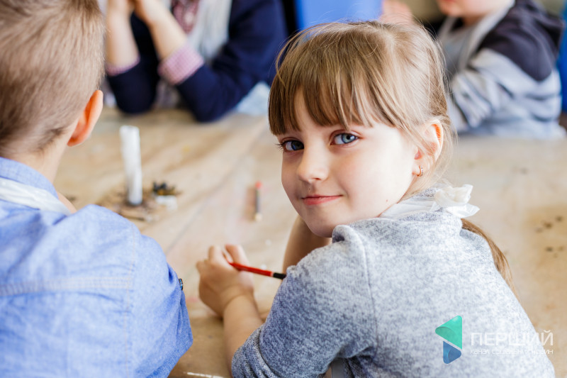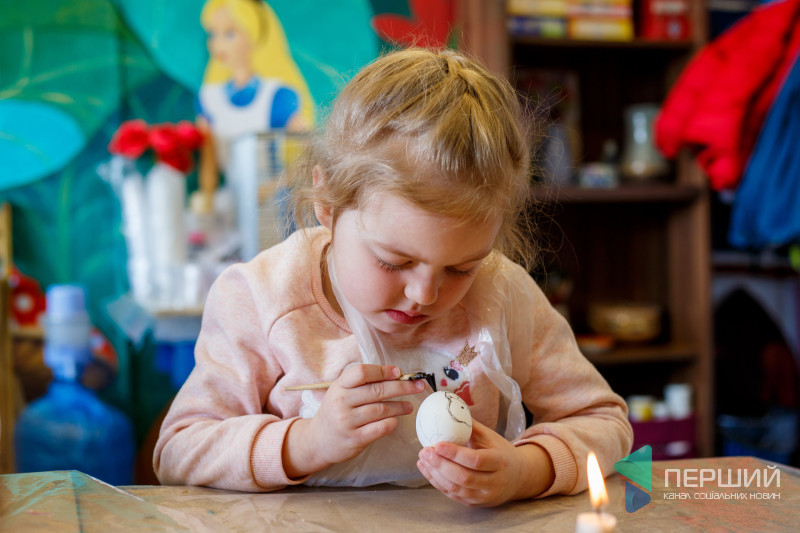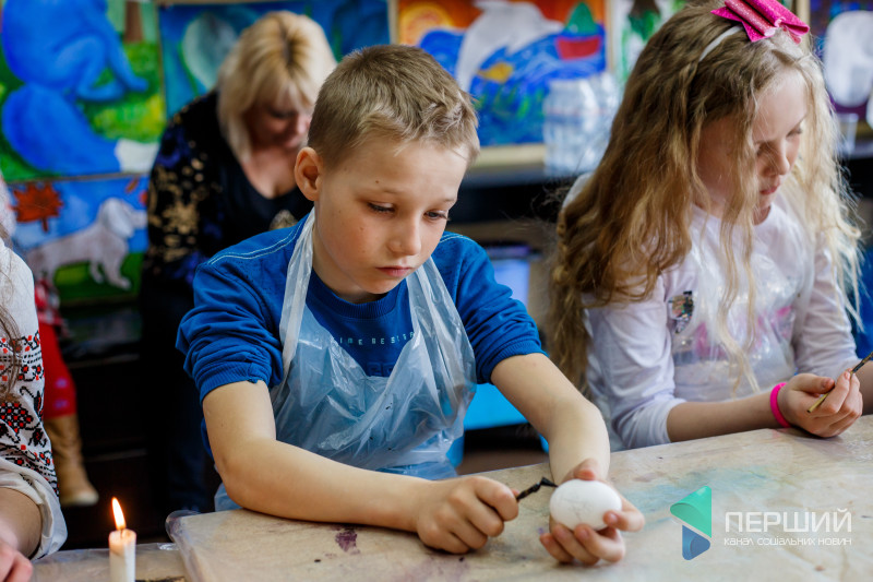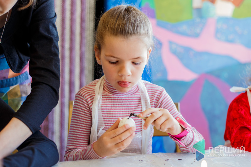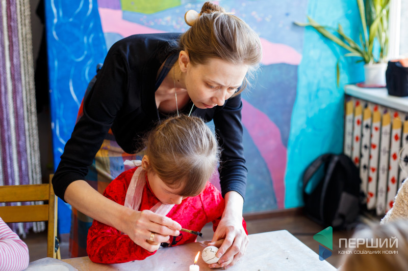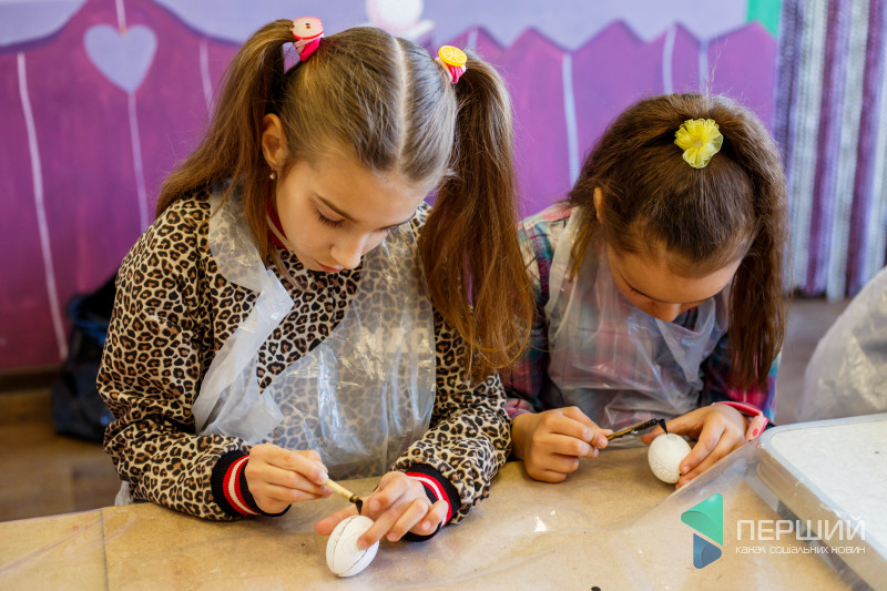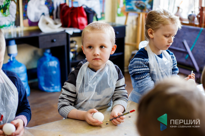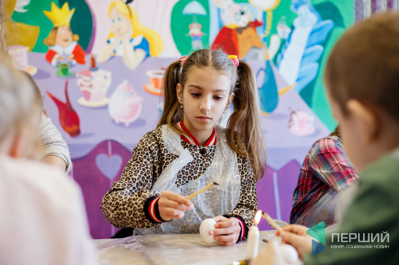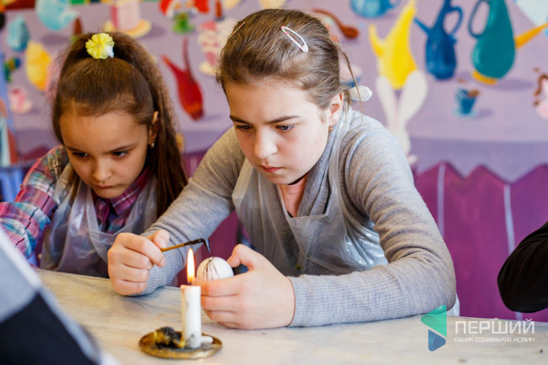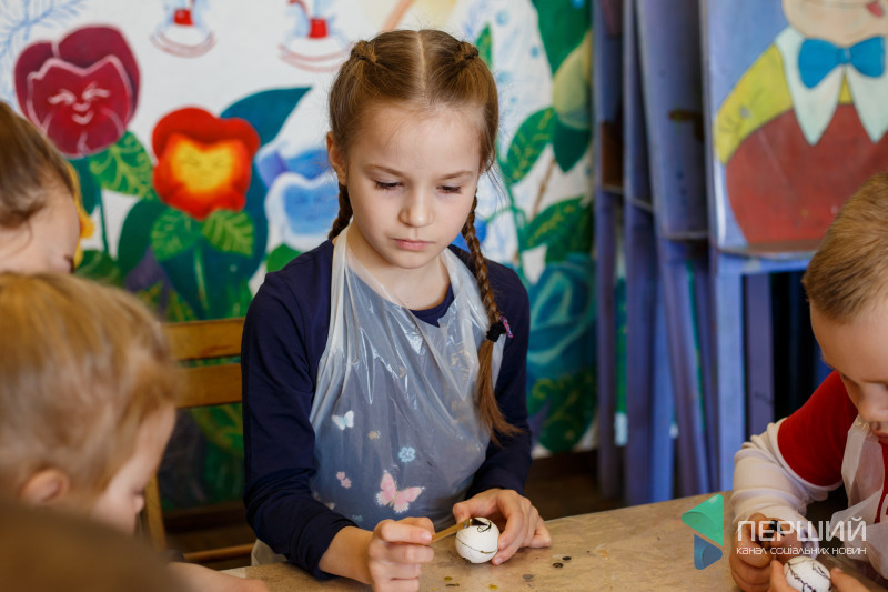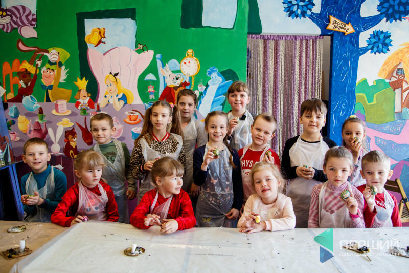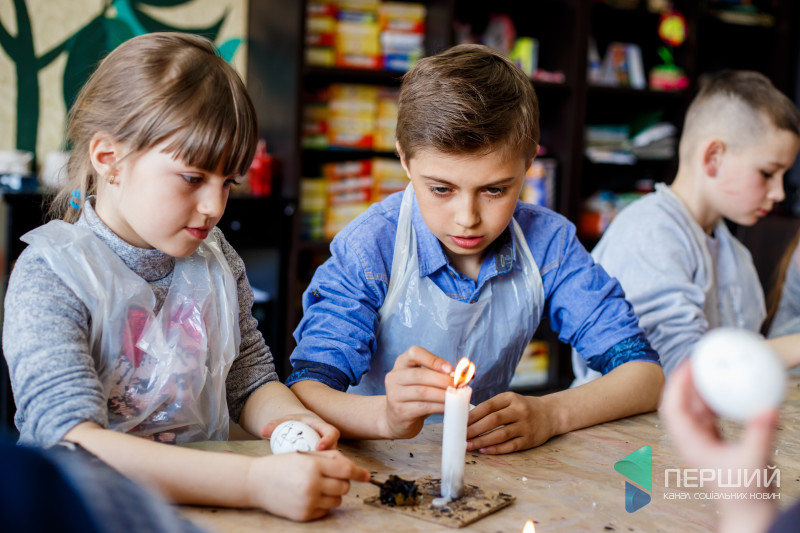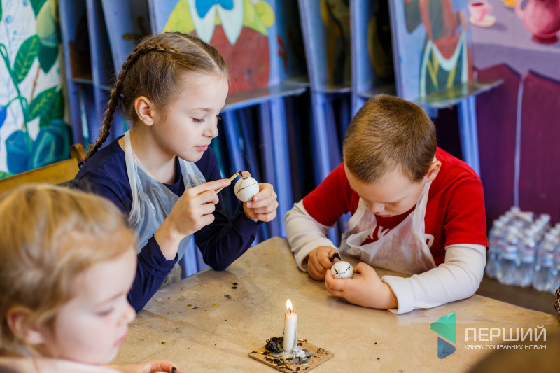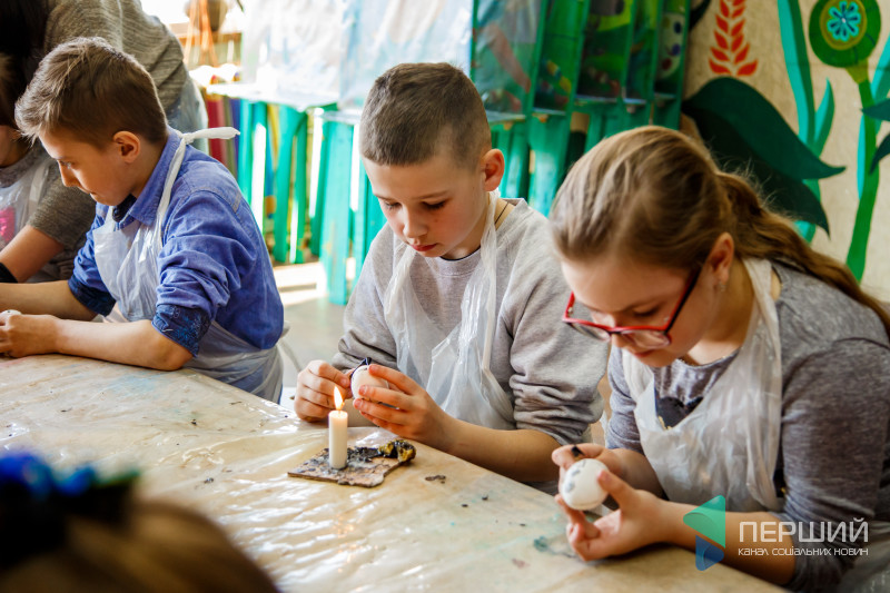 Зранку у двох приміщеннях студії гамірно, зібрались 30 дітей. Перед початком їм видали фартушки, розсадили на місця і провели міні-лекцію. Художниці пояснили, як саме і для чого колись українці розмальовували курячі яйця до Великодня.