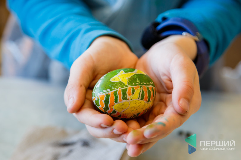 Врешті взялися за роботу. Дітям видали курячі яйця, з яких попередньо вийняли білок та жовток, і допомогли намалювати візерунки олівцем.