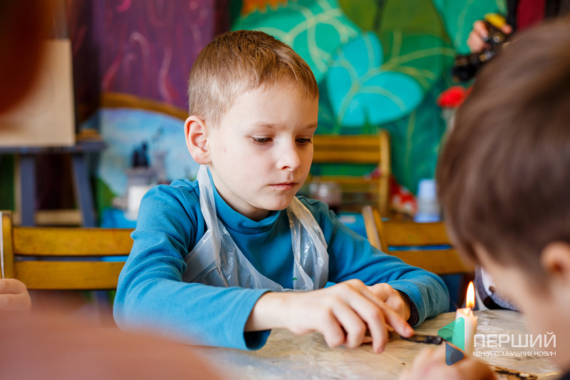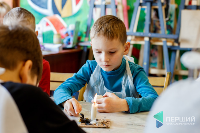 Потім взялись за найважче: усіх дітей навчили вправлятись із писачком. Це спеціальний інструмент для малювання воском. Його потрібно потримати над полум’ям свічки, тоді вмочити у віск, а далі можна малювати по писанці, виводити різні візерунки.