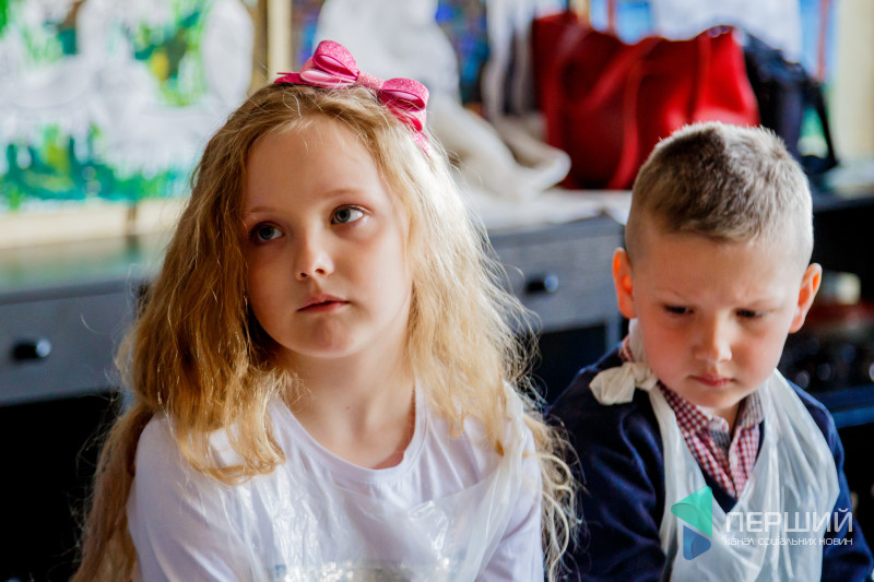 Деякі сім’ї відправили на заняття одразу двох дітей. Ось, наприклад, десятирічний Михайло Назарук не без гордості розповів, що писанки вже виготовляв, тому, на правах старшого і досвідченішого, допомагав ще й своїй молодшій сестричці Каті.