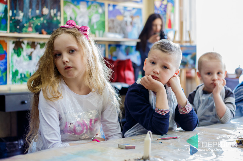 Ще цікавіше під стінами художньої студії – там, де в очікуванні сидять батьки. Усі вони трішки хвилюються. Кожен з них по черзі заглядає через двері, шукаючи очима свою дитину, немов хоче якось підбадьорити.