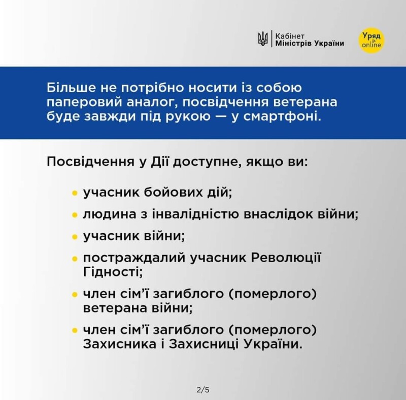 Серед головних пріоритетів Уряду – діджиталізація ветеранських послуг. е-Посвідчення ветерана уже доступне у Дії.