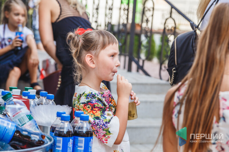 Тим часом батьки і діти вже збираються на вулиці. Тут для них приготували різні закуски та напої.