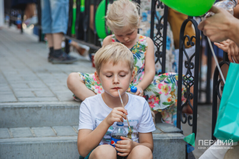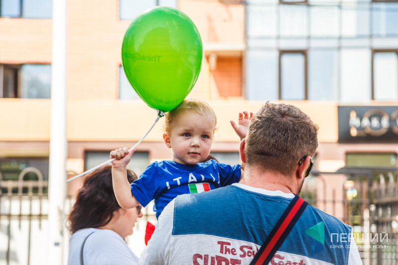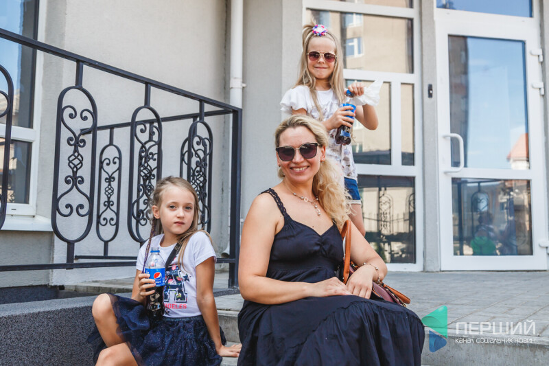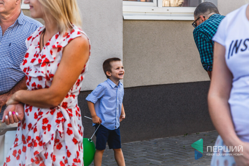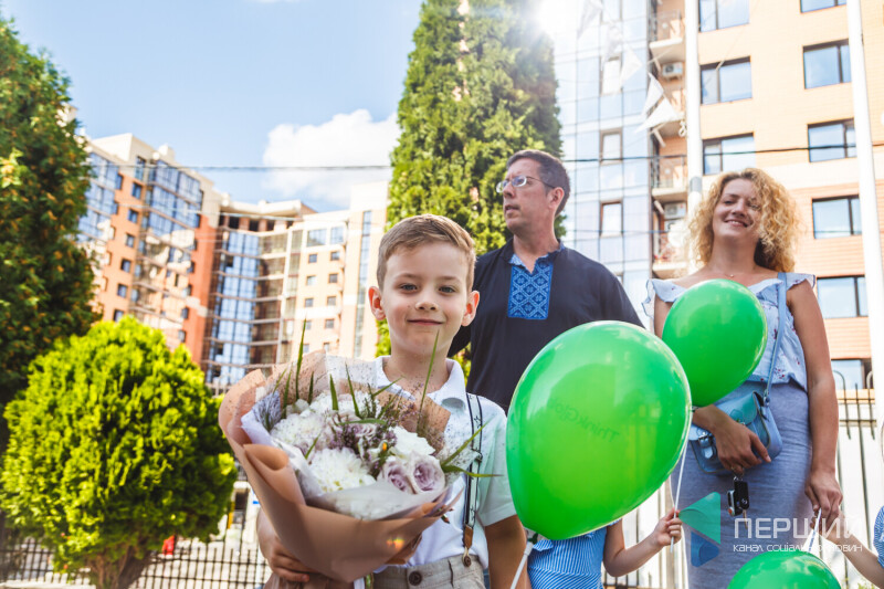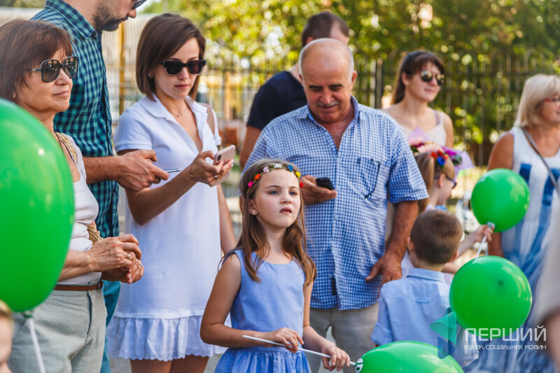 До них приєднуються інші – у футболках та шортах. Про щось перешіптуються. Просять дітей вести себе чемно. А ті щосили ганяють із зеленими кульками. І лише дехто з них сором'язливо ховає очі за букетиком квітів.