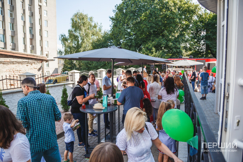 Подвір’я прикрашене зелено-білими прапорцями. Діджей вмикає хіти останніх років. У повітрі – суміш осінньої легкості та запаху шашликів.