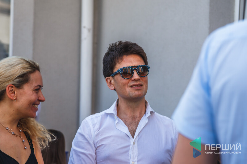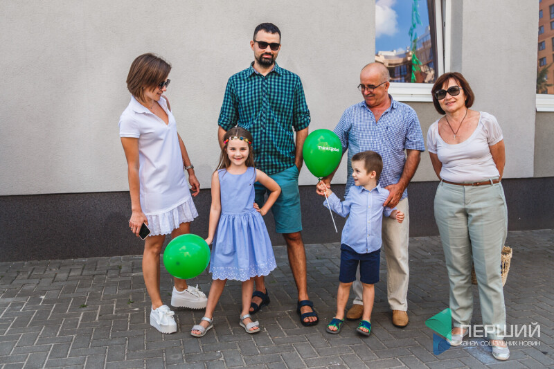 Далі Назар перерізає стрічки корпоративних кольорів – зелену та білу. Спалахують вогники. Все! Урочиста частина закінчилась.