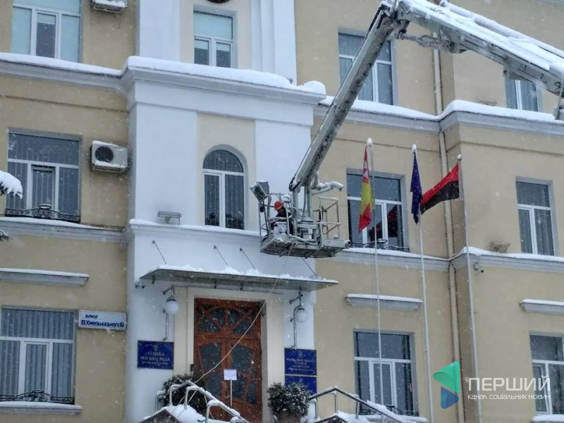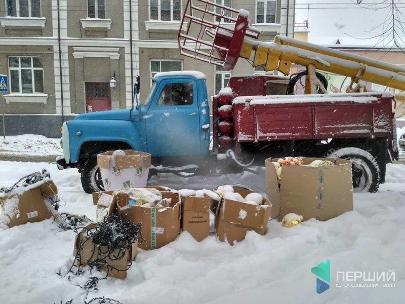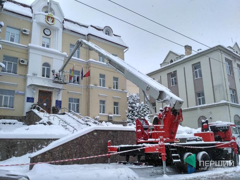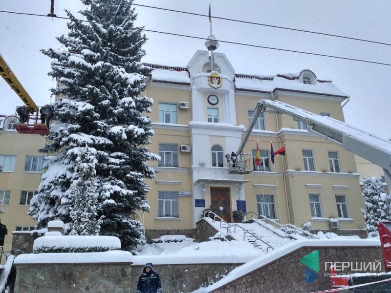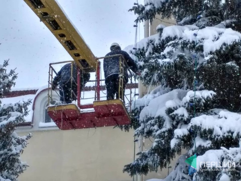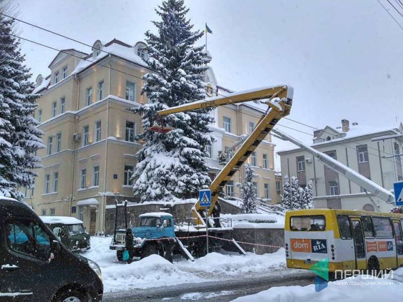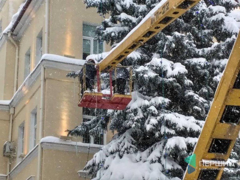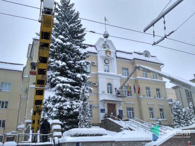 У Луцьку триває підготовка до новорічних свят. Працівники КП «Луцьксвітло» взялися прикрашати ялинку біля Луцькради.