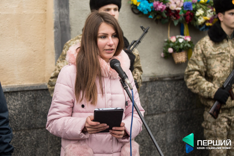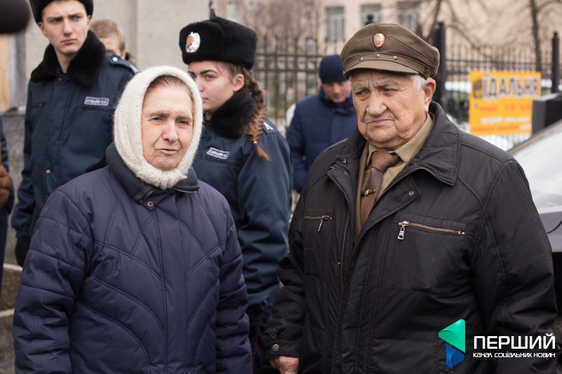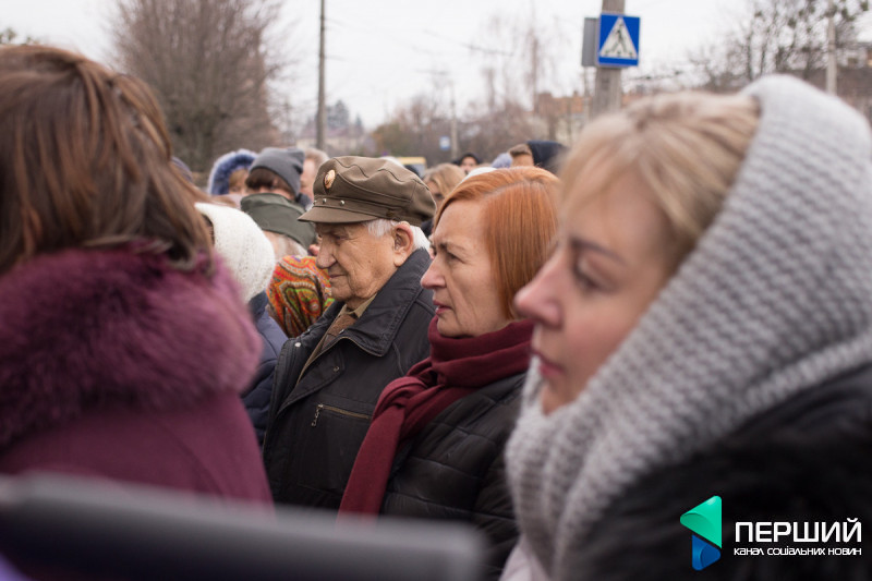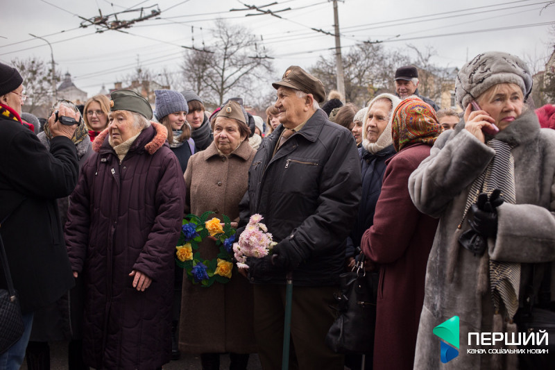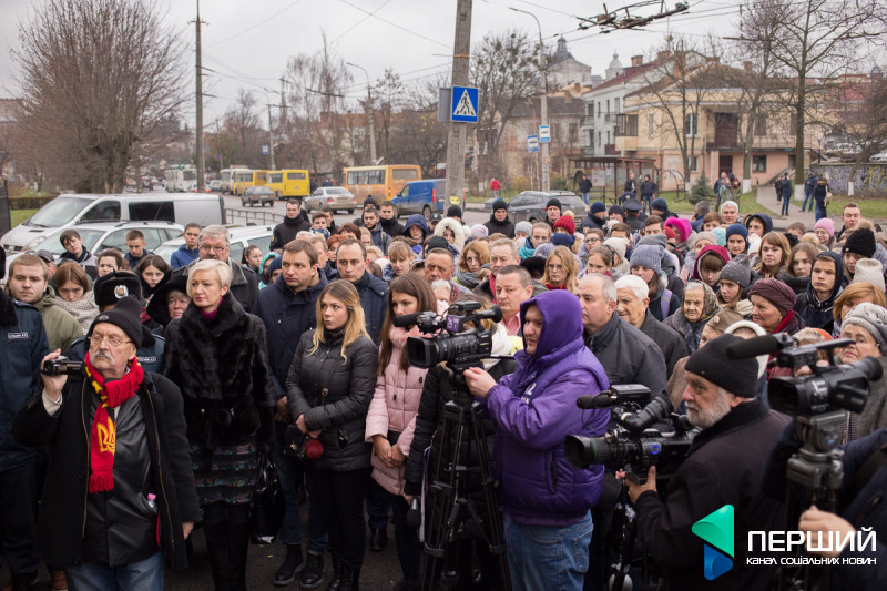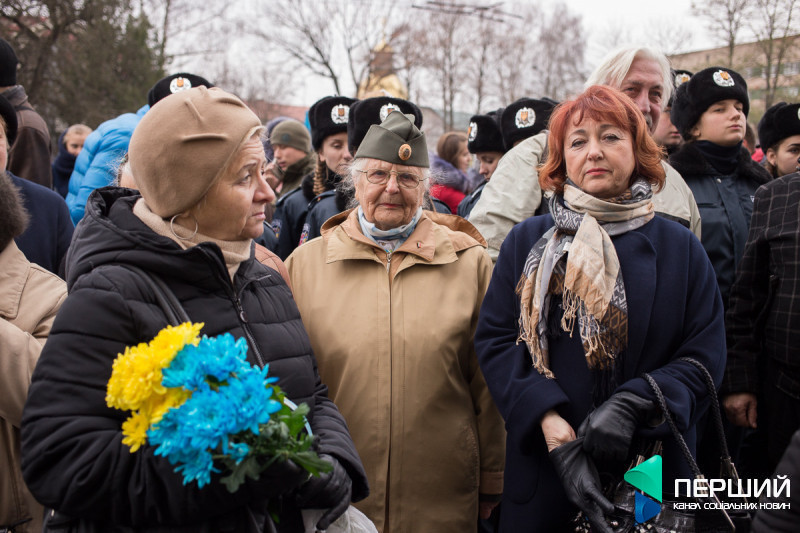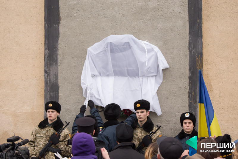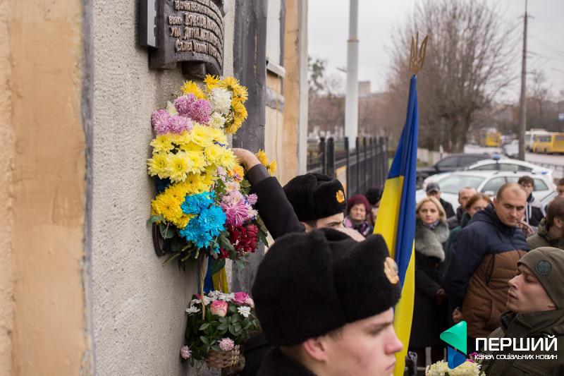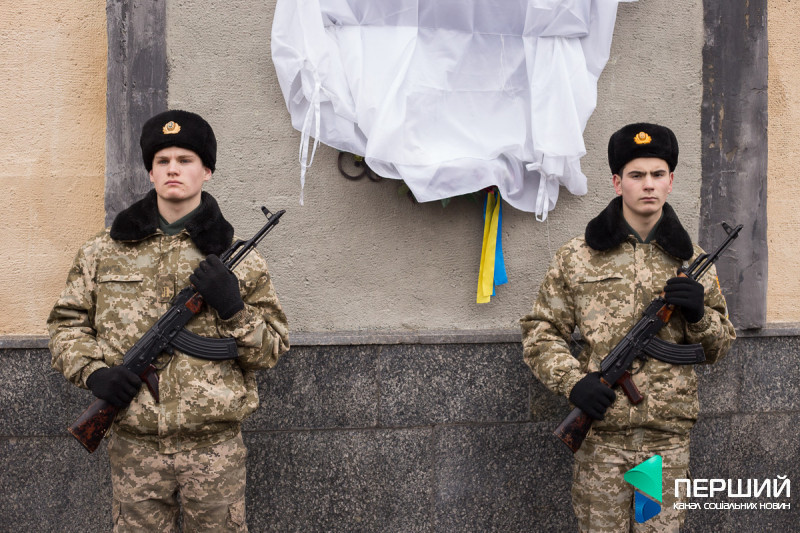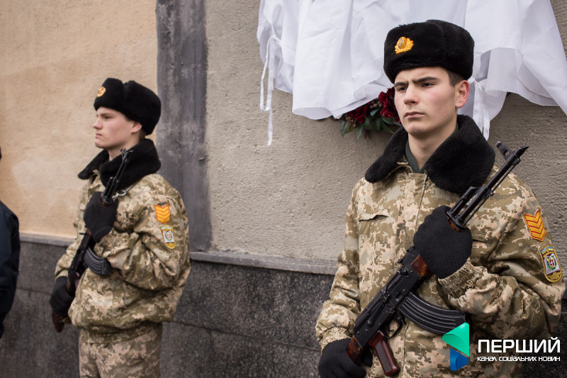 Біля медичного коледжу, на стіні якого прикріпили дошку, зібралося чимало людей, щоб вшанувати пам’ять вояків.