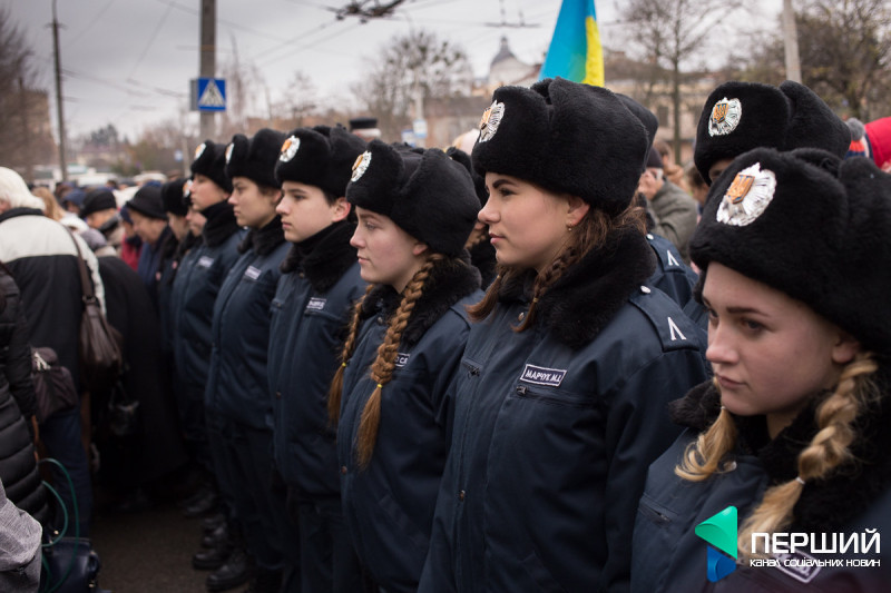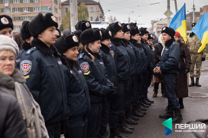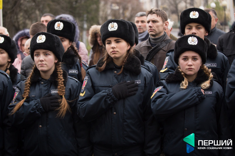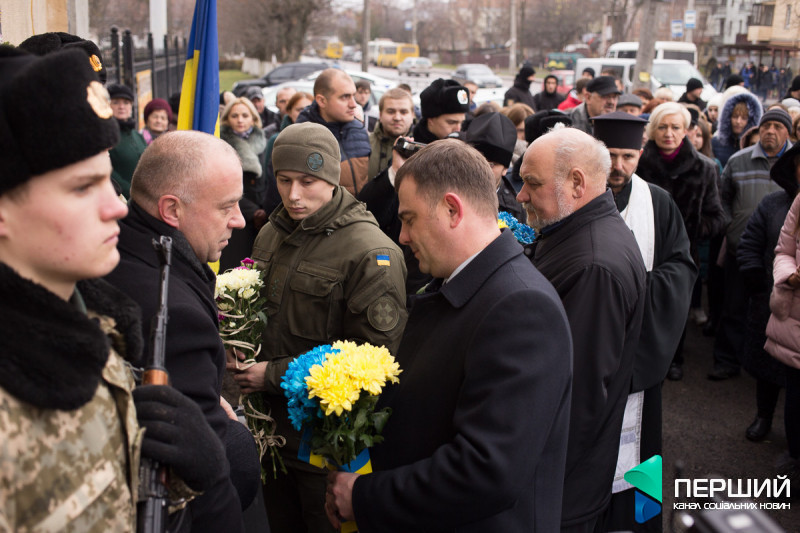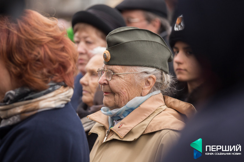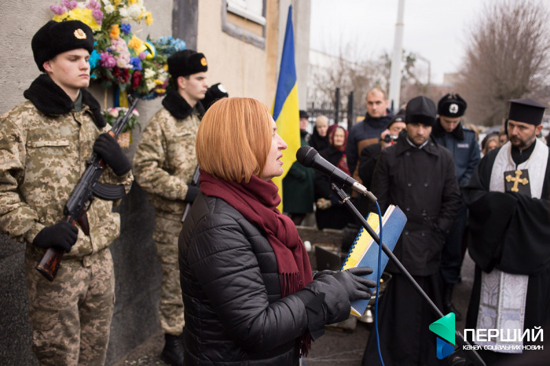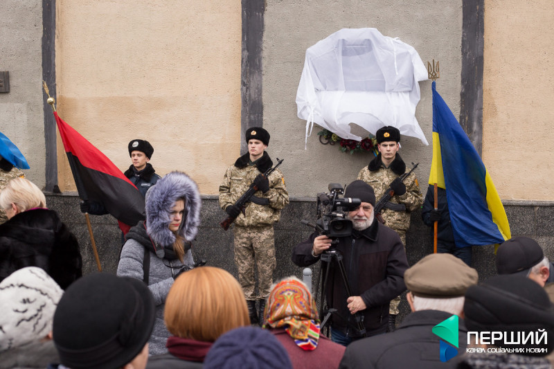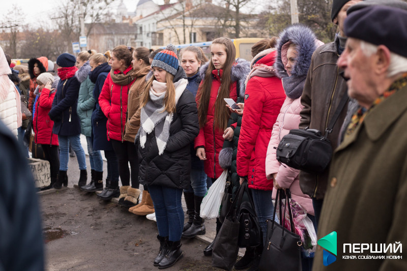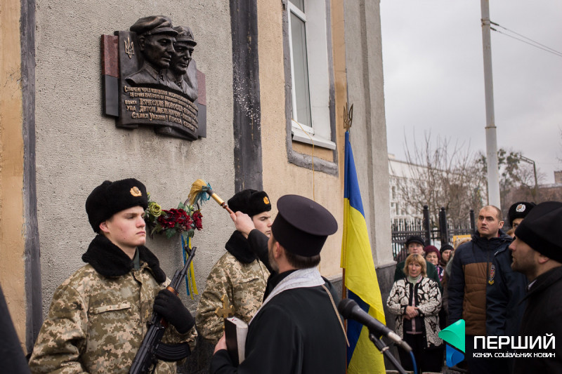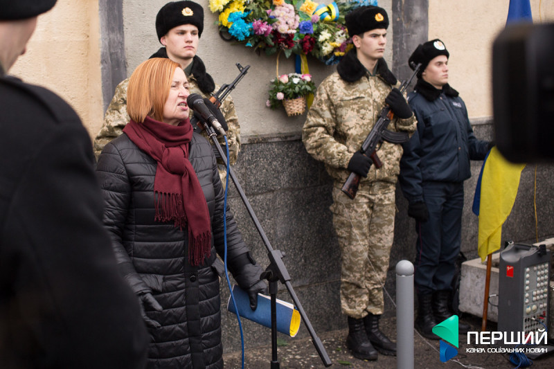 Біля медичного коледжу, на стіні якого прикріпили дошку, зібралося чимало людей, щоб вшанувати пам’ять вояків.