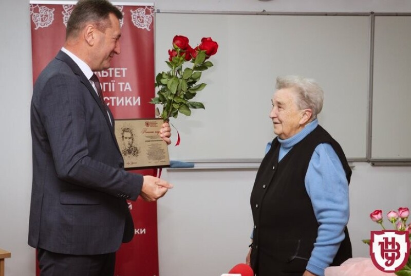 Також ювілярку вітали проректор з навчальної роботи та рекрутації, багаторічний очільник факультету філології та журналістики Юрій Громик, представники усіх кафедр факультету, колишні студенти й аспіранти. Варто зазначити, що в режимі онлайн вітання від вдячних студентів звучали з різних куточків України та світу, зокрема з далекої Канади.