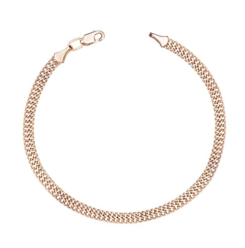Золотий жіночий браслет тоненький, майже ажурний підходить для тонкого або середнього зап’ястя. Його тонкі лінії надають вишуканості стилю і така прикраса актуальна як у комбінації с літнім сарафаном, так і в тандемі з діловим костюмом чи розкішною блузою в стилі вінтаж.