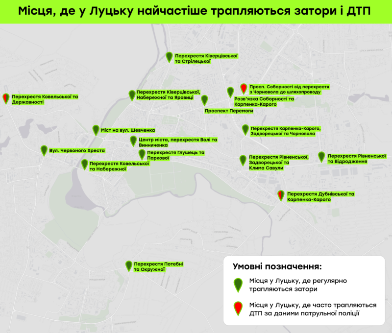 Ділянки в Луцьку, де найчастіше трапляються ДТП: