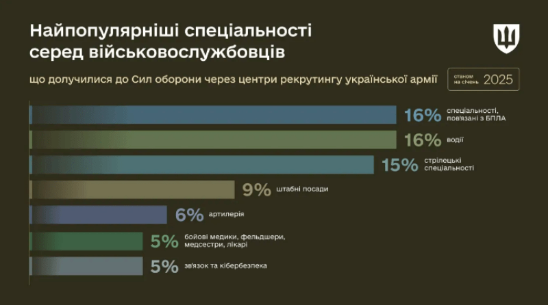 Які найпопулярніші спеціальності в рекрутингових центрах української армії