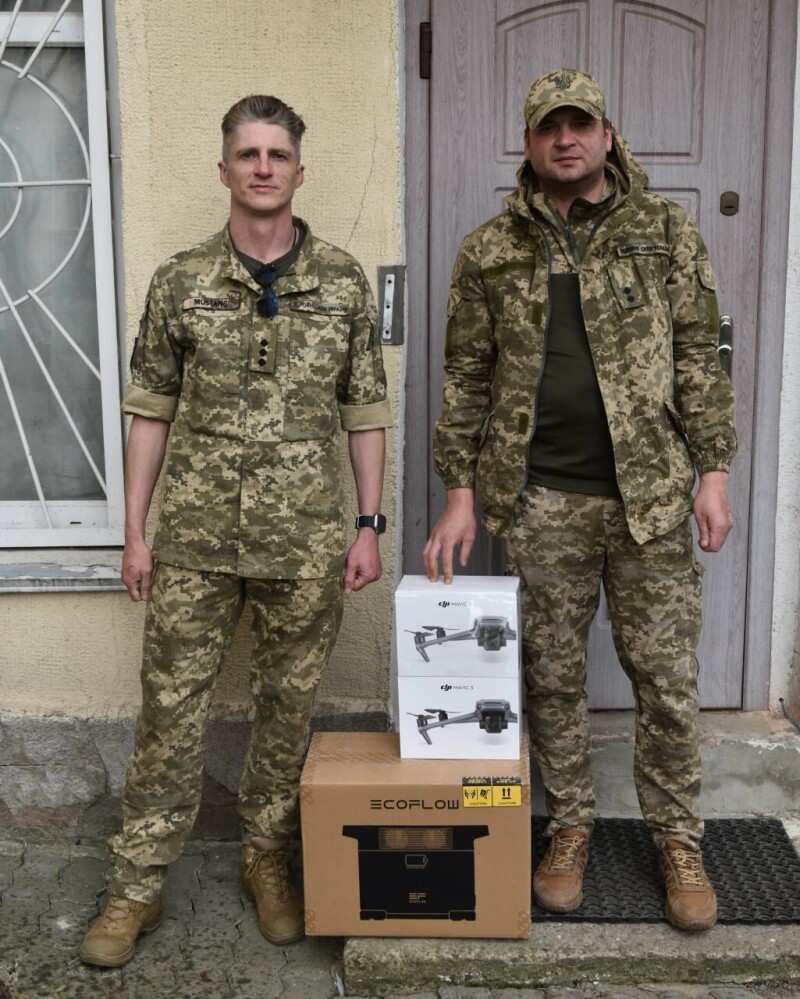 Для бійців в/ч А2755 передано три квадрокоптери DJI MAVIC 3 Thermal, портативні радіоелектронні засоби протидії безпілотним літальним апаратам КВЕРТУС AD COUNTER FPV та КВЕРТУС AD COUNTER BlackPack і 10 пар систем захисту ніг від протипіхотних мін URC Spider Boot.