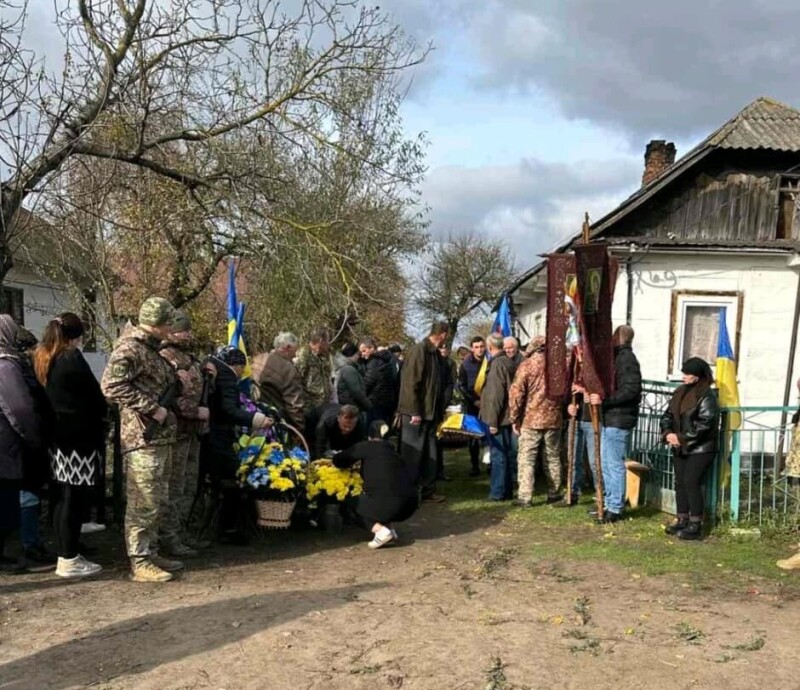 З усіма військовими почестями поховали Героя Олега Тананайка на сільському кладовищі.