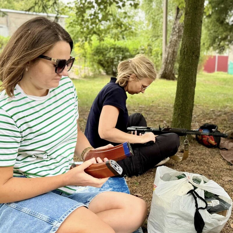 Під час навчань присутніх ознайомили з варіантами дій при загрозливих обставинах в умовах урбанізованої місцевості, можливості використання стрілецької зброї цивільним населенням.