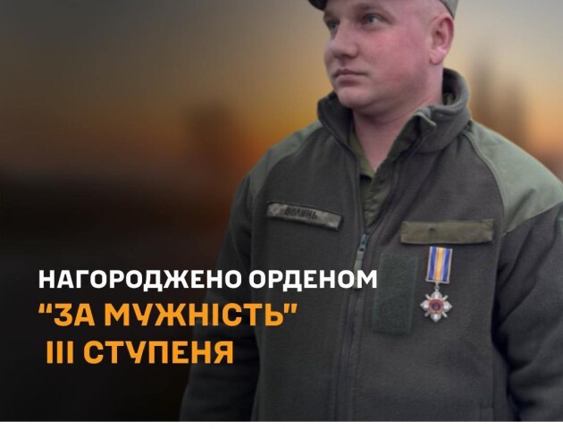Згідно з указом Президента України, військовослужбовця 23 інженерно-позиційного полку Командування Сил підтримки Збройних Сил України, старшого сержанта Вʼячеслава Сергійовича (позивний «Волинь») відзначено державною нагородою України - орденом «За мужність» ІІІ ступеня.