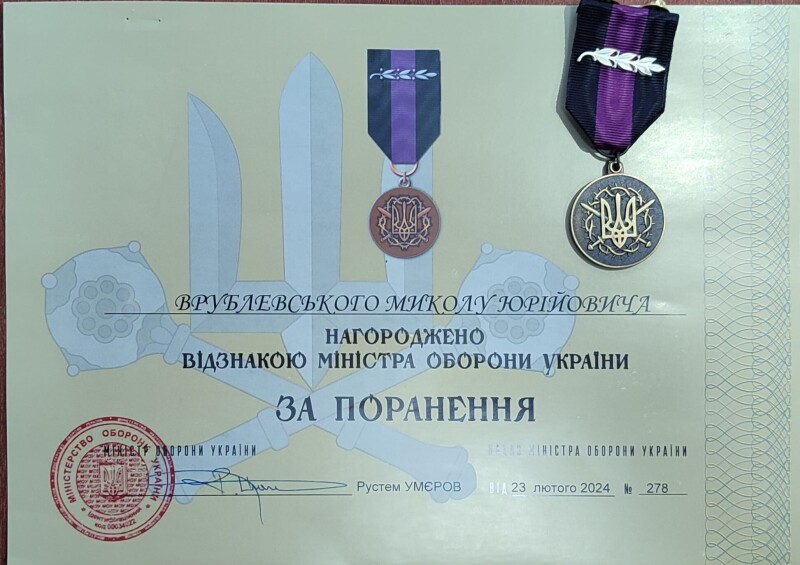 Почесної відзнаки удостоїли воїна Миколу Врублевського, жителя села Воєгоща Камінь-Каширської громади. Військовослужбовець був призваний на службу 19 квітня 2022 року. Захищав суверенітет та територіальну цілісність України у складі військової частини А7013.