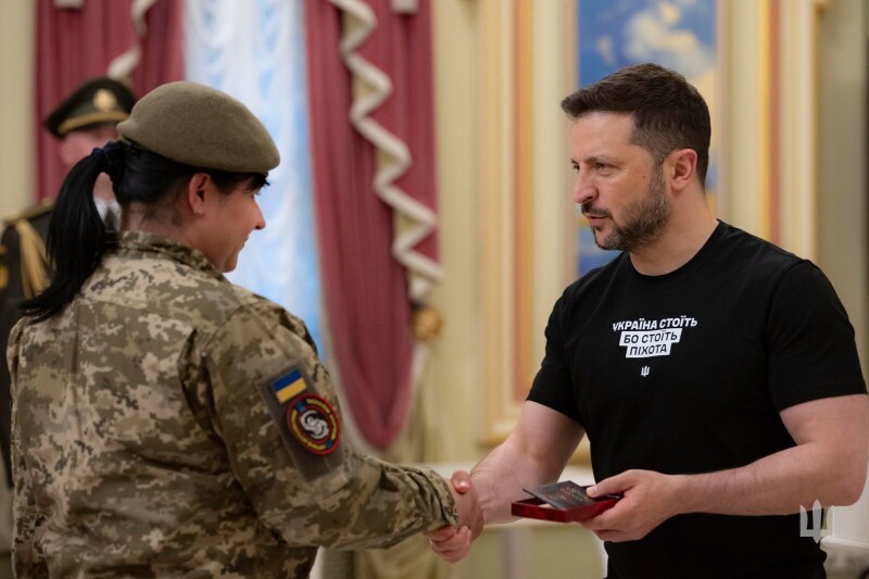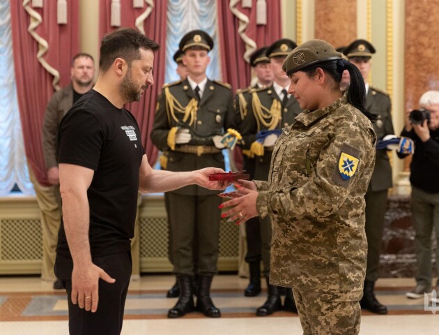 Орден «За мужність» ІІІ ступеню Президент України Володимир Зеленський вручив бійчині 23 ОМПБ «Хортиця» 56 окремої мотопіхотної Маріупольської бригади з позивним «Мать».