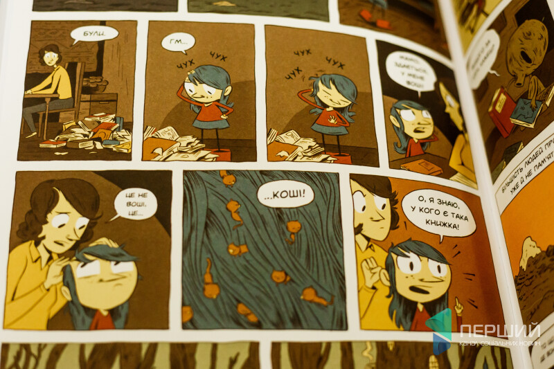 «О, це я (бере з полиці книжку з дитячими коміксами «Гільда і опівнічний велетень» Люка Пірсона, - авт.). Гільда – то я (показує смішну маленьку героїню книжки, - авт.). Вона живе з мамою в міфічному лісі. Праліс. У неї друзі - міфічні істоти. Вона досліджує світ. Подорожує, читає, малює. Це її друг лісолень. Тут є ще вошкоти. Це маленькі кошенята-воші. А ще вона постійно комусь допомагає».