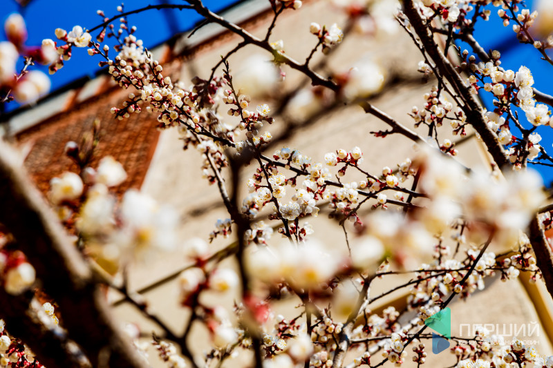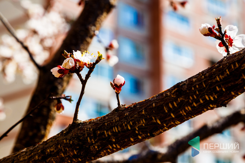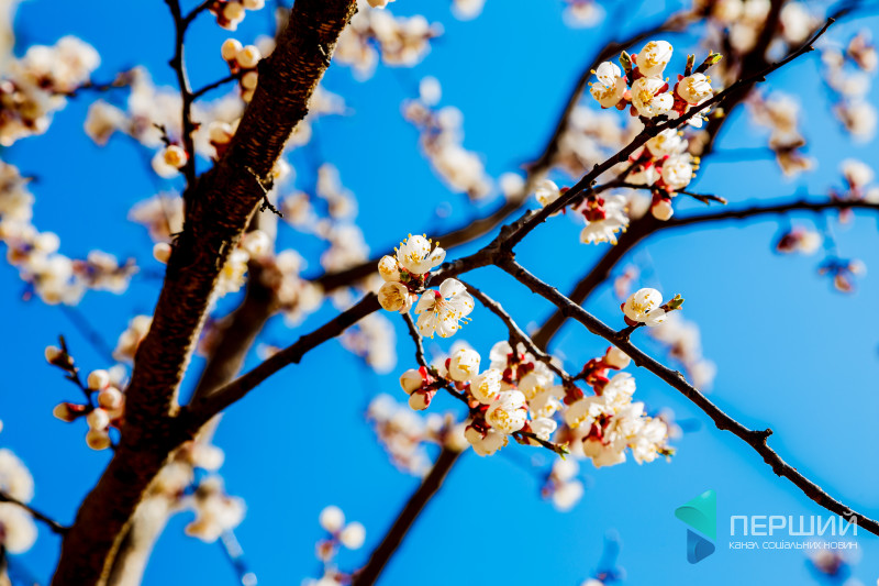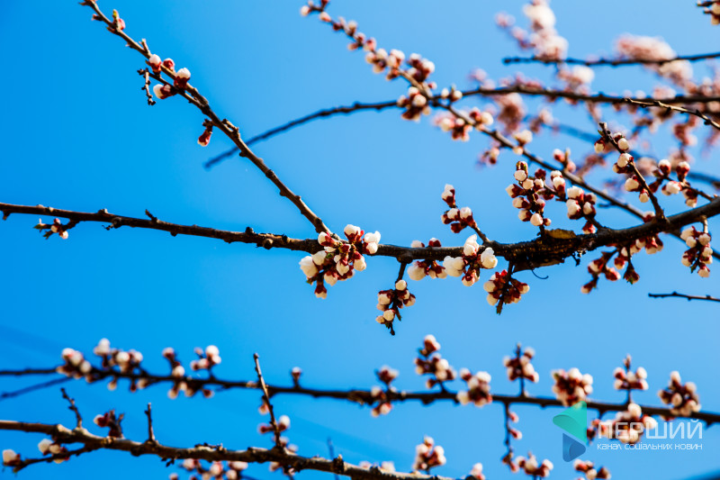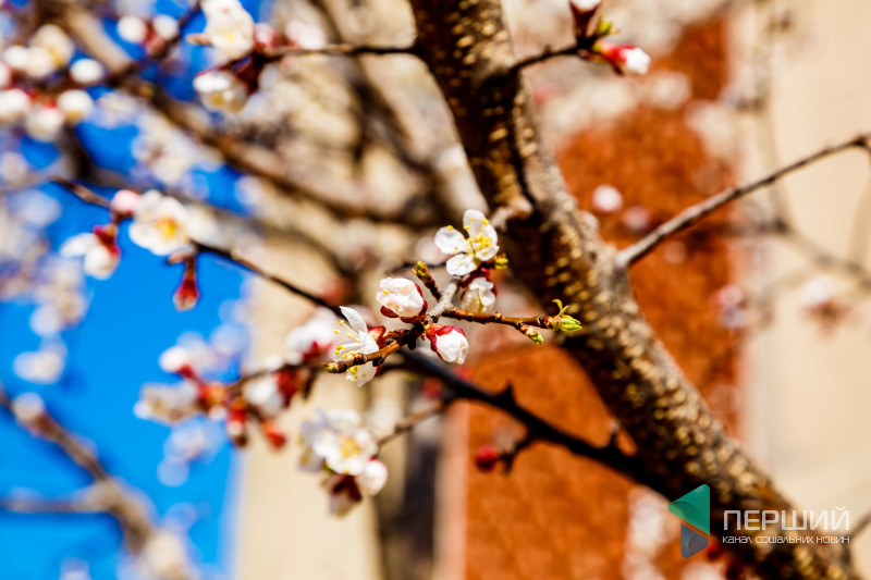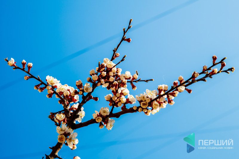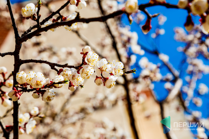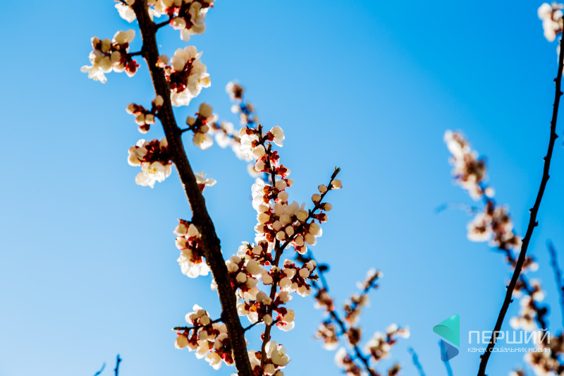 Біло-рожевим цвітом вкрились абрикоси. Незабаром зацвіте бузок. Йдеш і око милується.