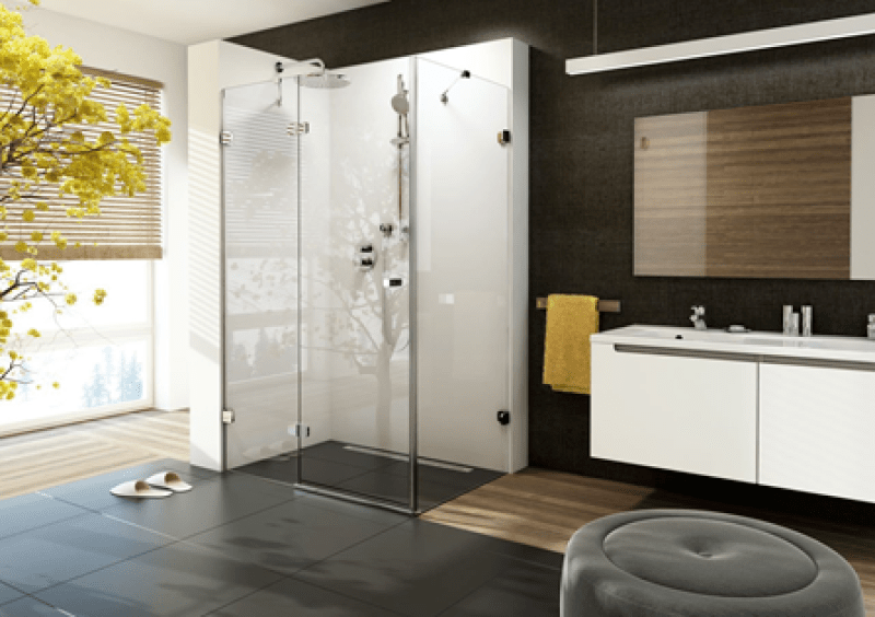 Перегородки вибирають під розмір піддону. Найчастіше це прозорі або тоновані панелі із загартованого скла, які кріпляться до підлоги за допомогою профілів. Останні бувають хромованими, пофарбованими в білий або чорний колір. У сучасних мінімалістичний інтер'єрах часто використовують безкаркасні перегородки, які мають кілька непомітних точок опори. Для пристінного душу знадобляться дві бічні перегородки та двері. Для кабіни в зведеній ніші - тільки двері.