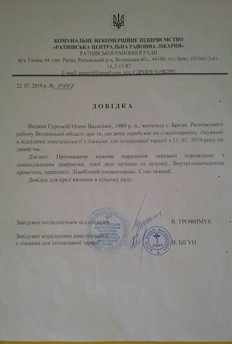 У селі Броди Ратнівського району п’яний чоловік вдарив свою жінку ножем, через що вона потрапила в реанімацію та потребує допомоги небайдужих.