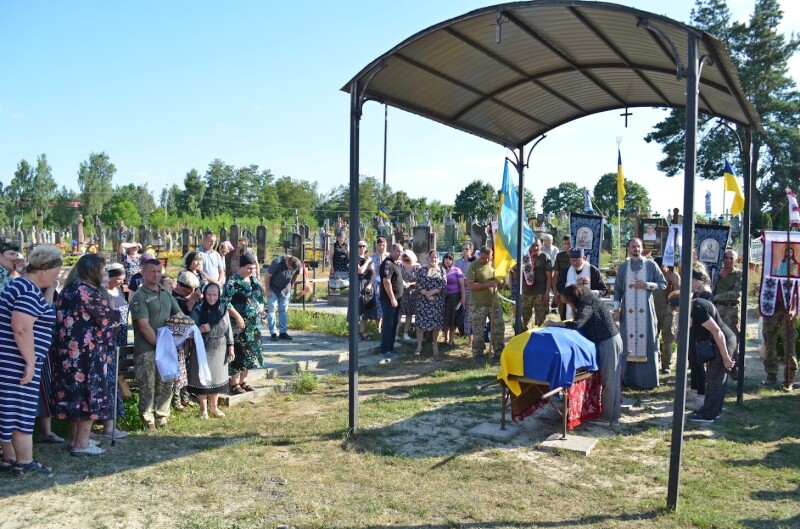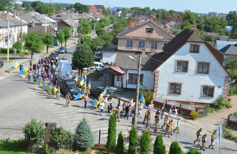 28 червня… Уривчасто заголосили увись про жалобу дзвони, аби весь Камінь-Каширський почув, що храм зустрічає загиблого в бою містянина й кличе усіх помолитися за упокій його душі. Вгорі пекло палюче сонце, а всередині на додачу припікало горе втрати та усвідомлення нескінченності жертв цієї війни… У повітрі витала атмосферна задуха, душило щось у грудях і від почуття безпорадності проти несправедливості всесвіту. Жаль і смуток опустилися на плечі присутніх у церкві. Впала на коліна матуся й притулилась ніжно до домовини. Так годину навколішки і простояла всю панахиду: у думах говорила то з сином, то з Богом, щось пошепки примовляла, гладила закритий гріб, відтворюючи образ сина тільки в уяві. Наче ото не труну обіймала, а гойдала маленького Валіка, як колись, у колисці. Тільки тоді чекала перших слів свого первістка, а тепер слухала лиш його німе мовчання. Майже весь вік сама ростила двох діток, рано пішов у засвіти чоловік. Усяко було: і гордилася сином, і сердилась на якісь вчинки, і раділа за його досягнення, і плакала через негаразди. Але на серці, як і кожна ненька, лишила тільки добрі спомини. Для неї її дитина не мертва, а просто стала невидимою.