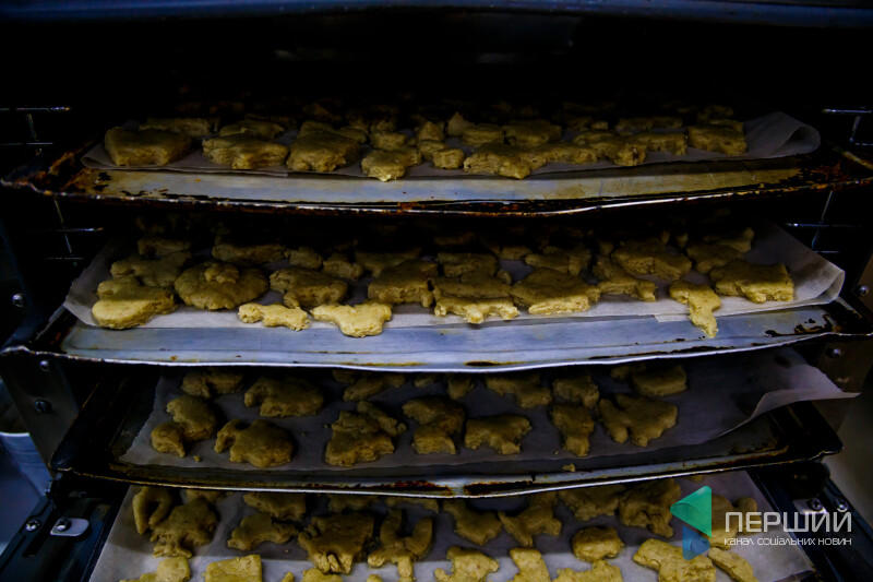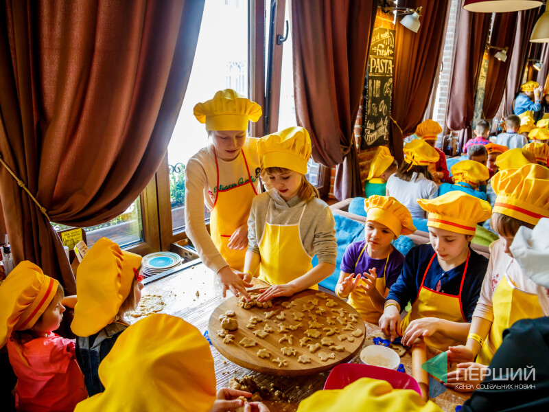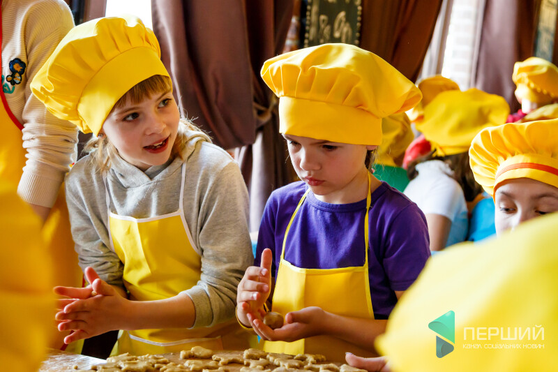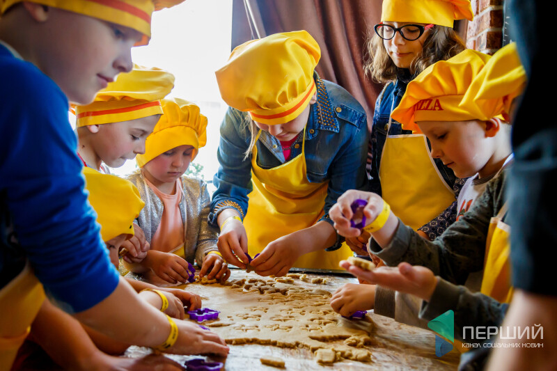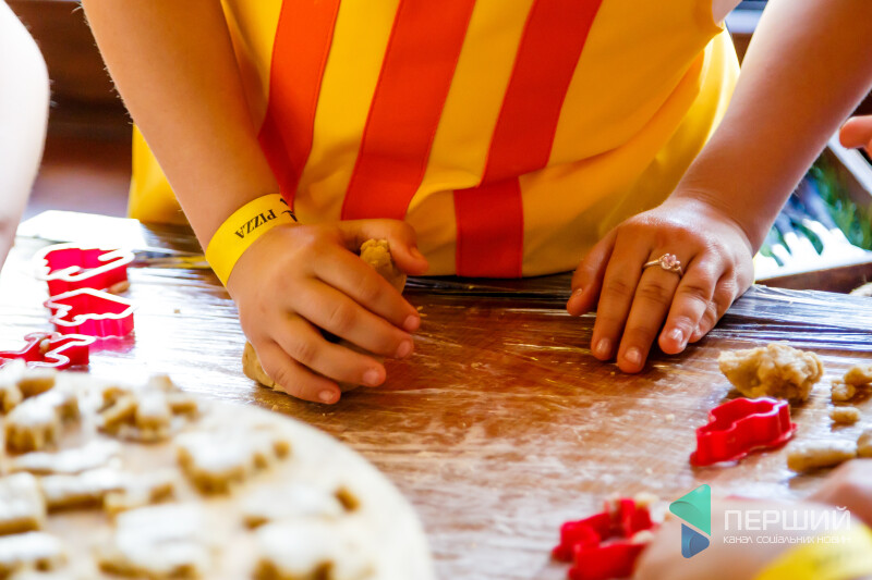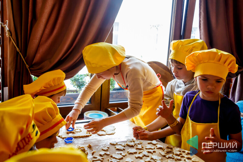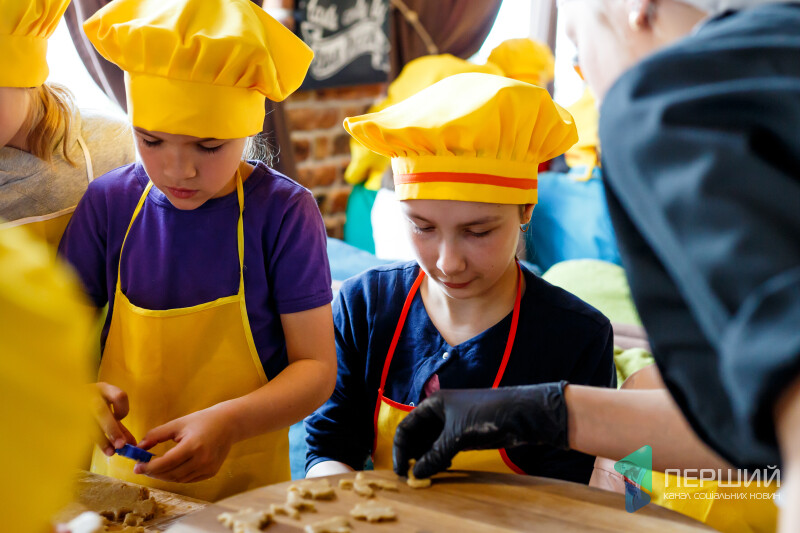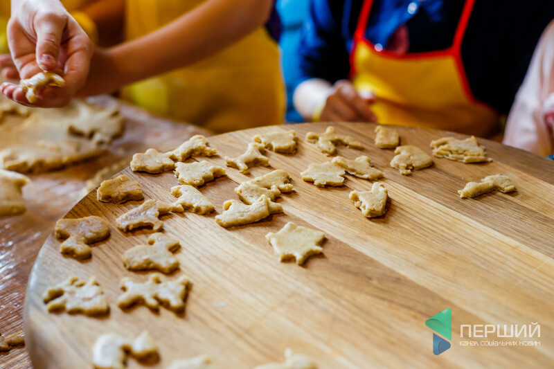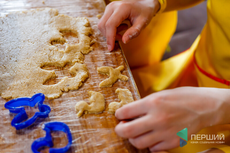 Розминали і розкачували приготовлене заздалегідь тісто, витискали формочками фігури, розкладали на столах… Тісто піддавалося не всім і не відразу, та діти зосереджено «воювали», заглядаючи одне на одного. Із підказками кухарів кожне нове печиво ставало кращим і кращим, і зрештою дитячу «ліпнину» було не відрізнити від професійної.
