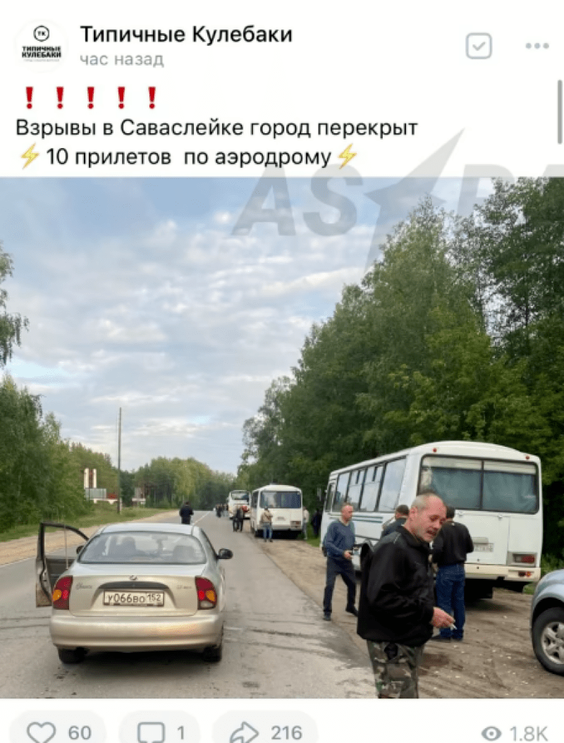 Місцеві пабліки повідомляють "про 10 прильотів" по військовій авіабазі "Саваслейка". Також стверджують, що проїзд у Кулебаки перекрили.