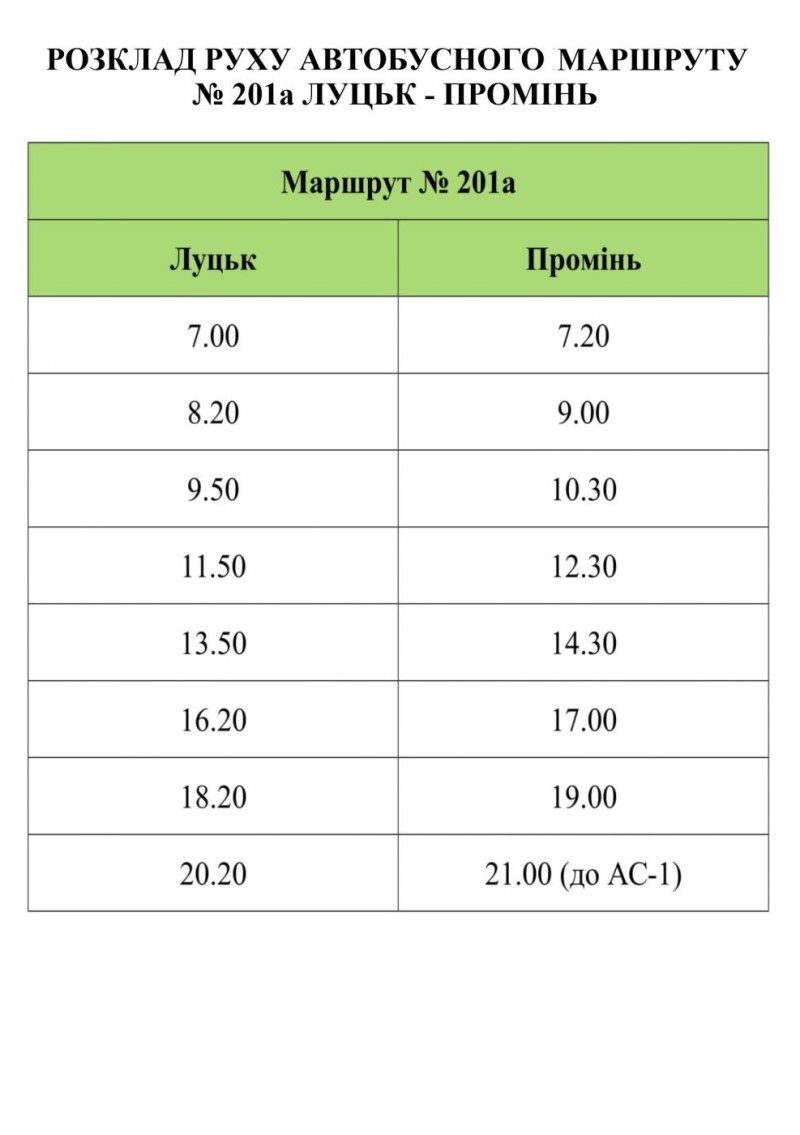 Із 20 березня до послуг промінчан маршрут №201а «Луцьк – Промінь», повідомляє сайт Боратинської сільської ради.